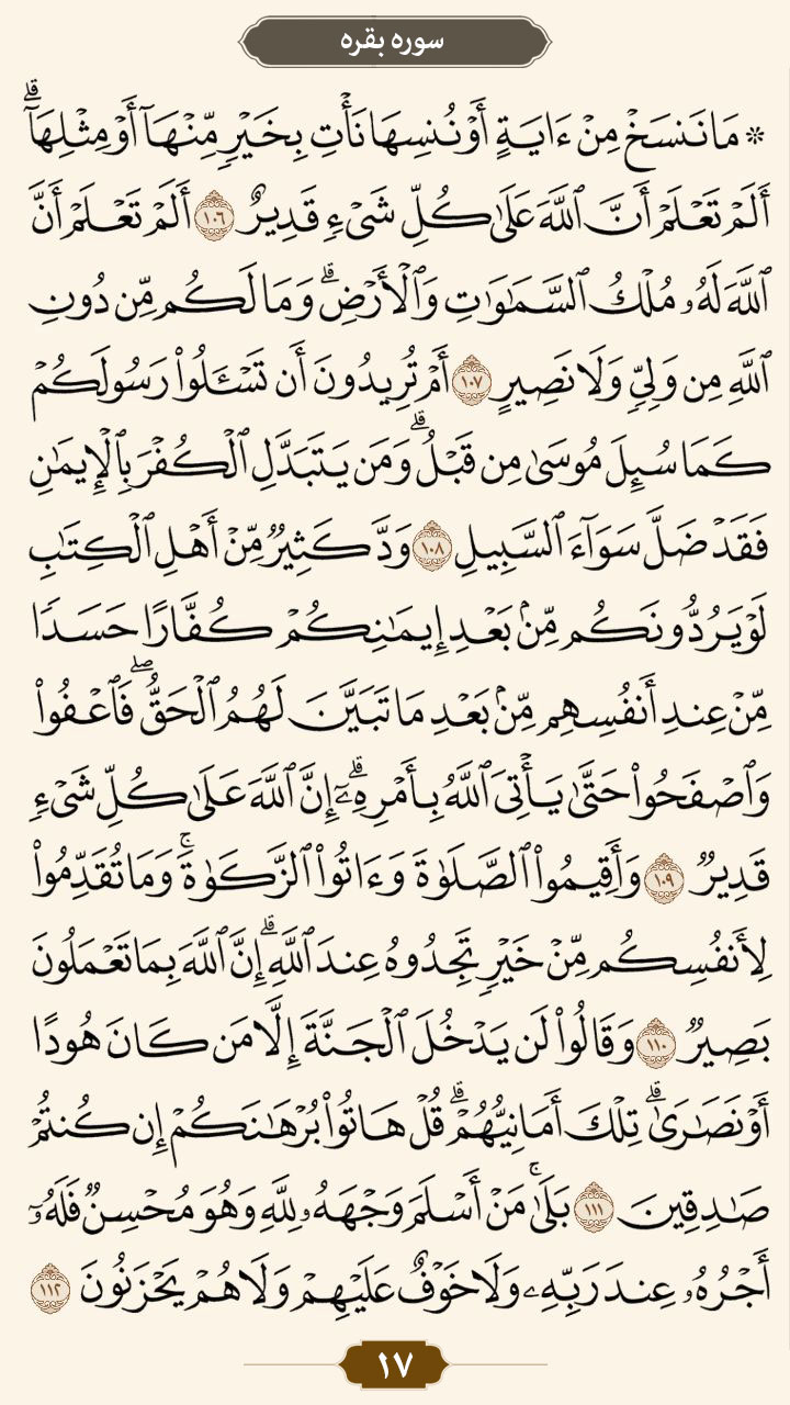 به گزارش پایگاه خبری تحلیلی «نخل و نور»؛ ترتیل صفحه   ۱۷  قرآن سوره مبارکه بقره را بخوانید.