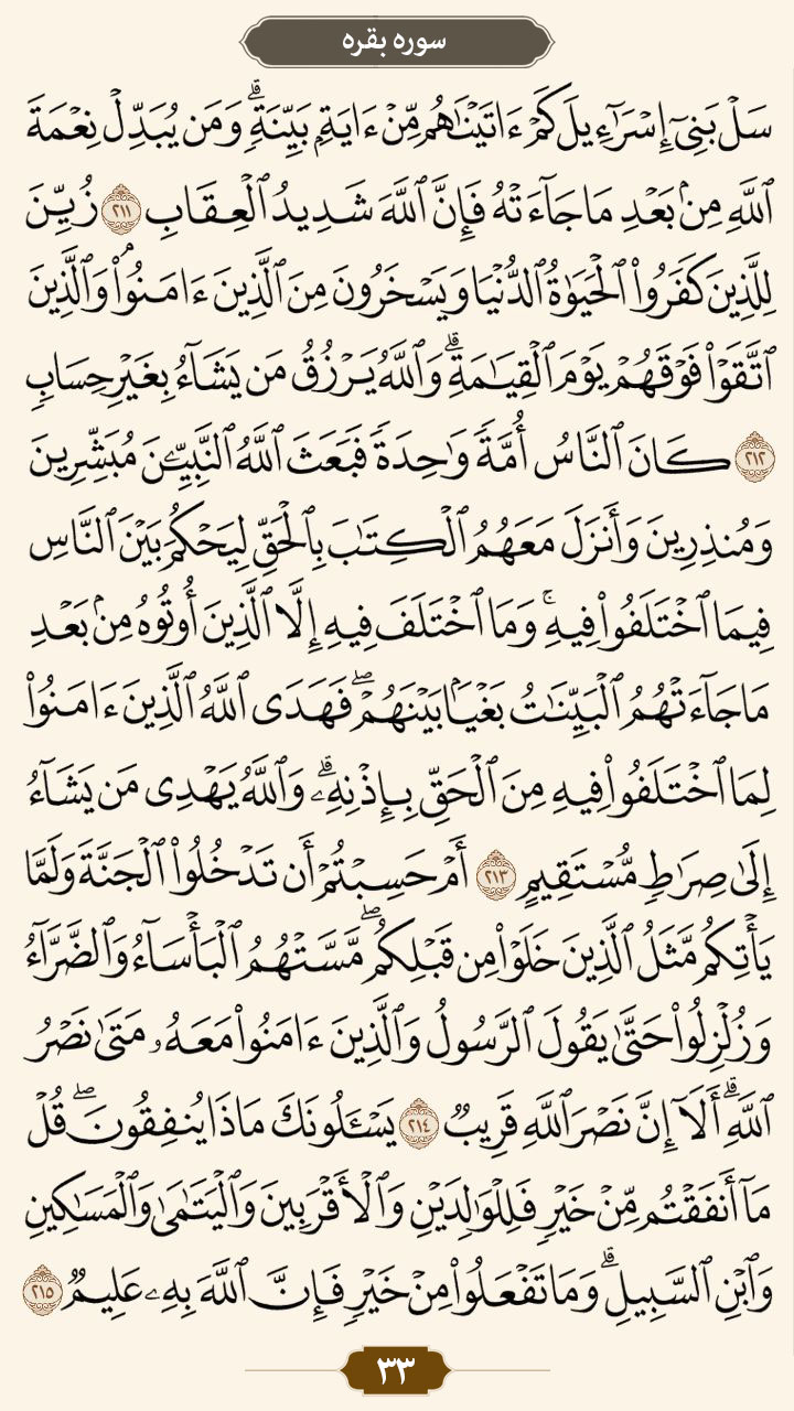 به گزارش پایگاه خبری تحلیلی «نخل و نور»؛ ترتیل صفحه ۳۳ قرآن سوره مبارکه بقره را بخوانید.