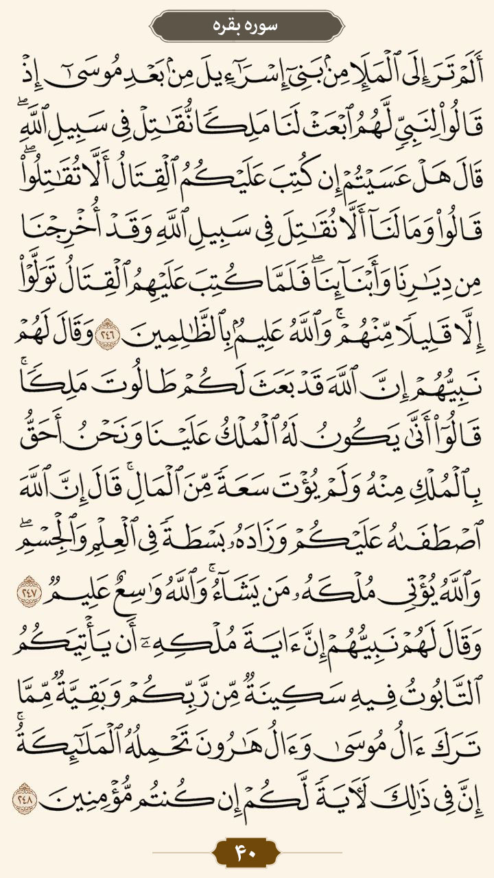 به گزارش پایگاه خبری تحلیلی «نخل و نور»؛ ترتیل صفحه ۴۰ قرآن سوره مبارکه بقره را بخوانید.